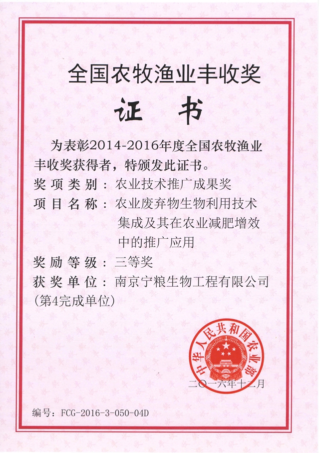 南京寧糧生物工程有限公司(以下簡稱“公司”)是專業從事農用微生物菌劑、有機(類)肥料、復合微生物肥料、水溶肥料、土壤調理劑、重金屬葉面阻控劑等產品的研發、生產、銷售和服務的高新技術企業。公司占地200余畝。 公司擁有先進的生產、檢測設備與管理規范的生產基地。與南京農業大學、江蘇省農業科學院、中科院南京土壤研究所等科研院校建立了緊密的產學研合作關系,在南京農業大學和江蘇省農科院設有“寧糧”獎學金、獎教金和獎勵基金;擁有多個研發平臺并建有江蘇省研究生工作站;聘請了多位科研院校的教授專家為公司的技術顧問和技術指導。公司現已是中國有機(類)肥料生產技術創新戰略聯盟核心企業、江蘇高校協同創新中心有機固...